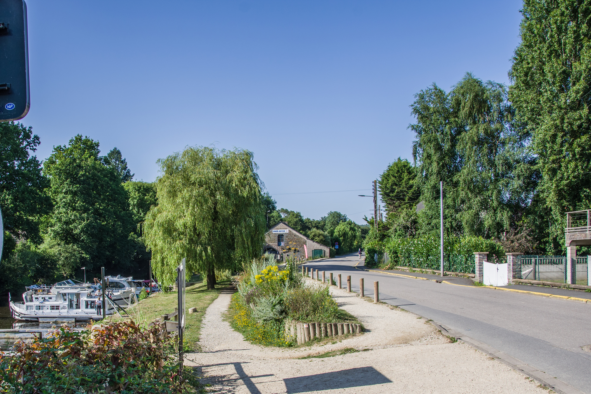 Rue du Relais postal vue du trottoir en surplomb du jardin des Libellules.
