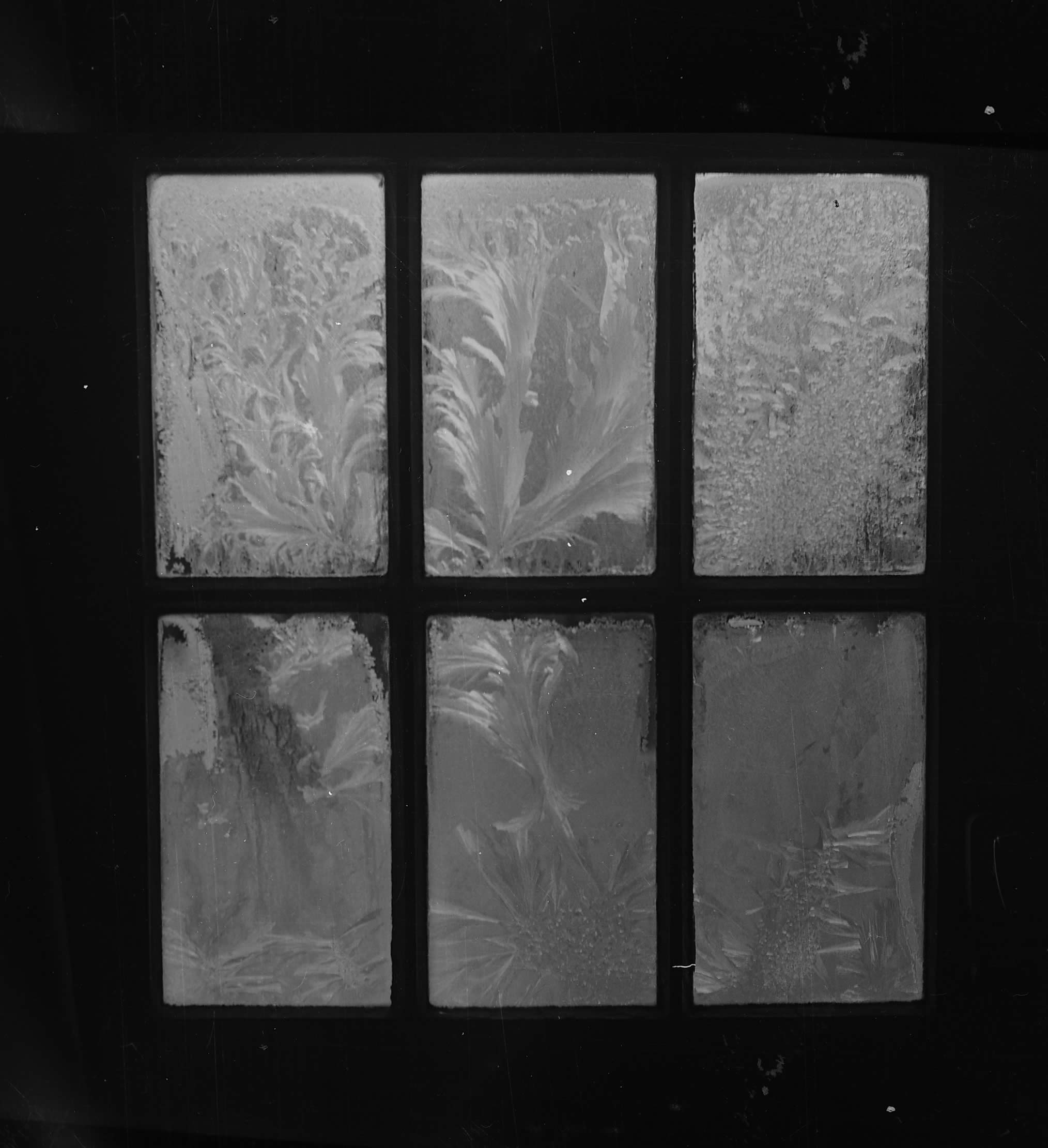 Givre sur la face intérieure d'un vitrage dans une maison.